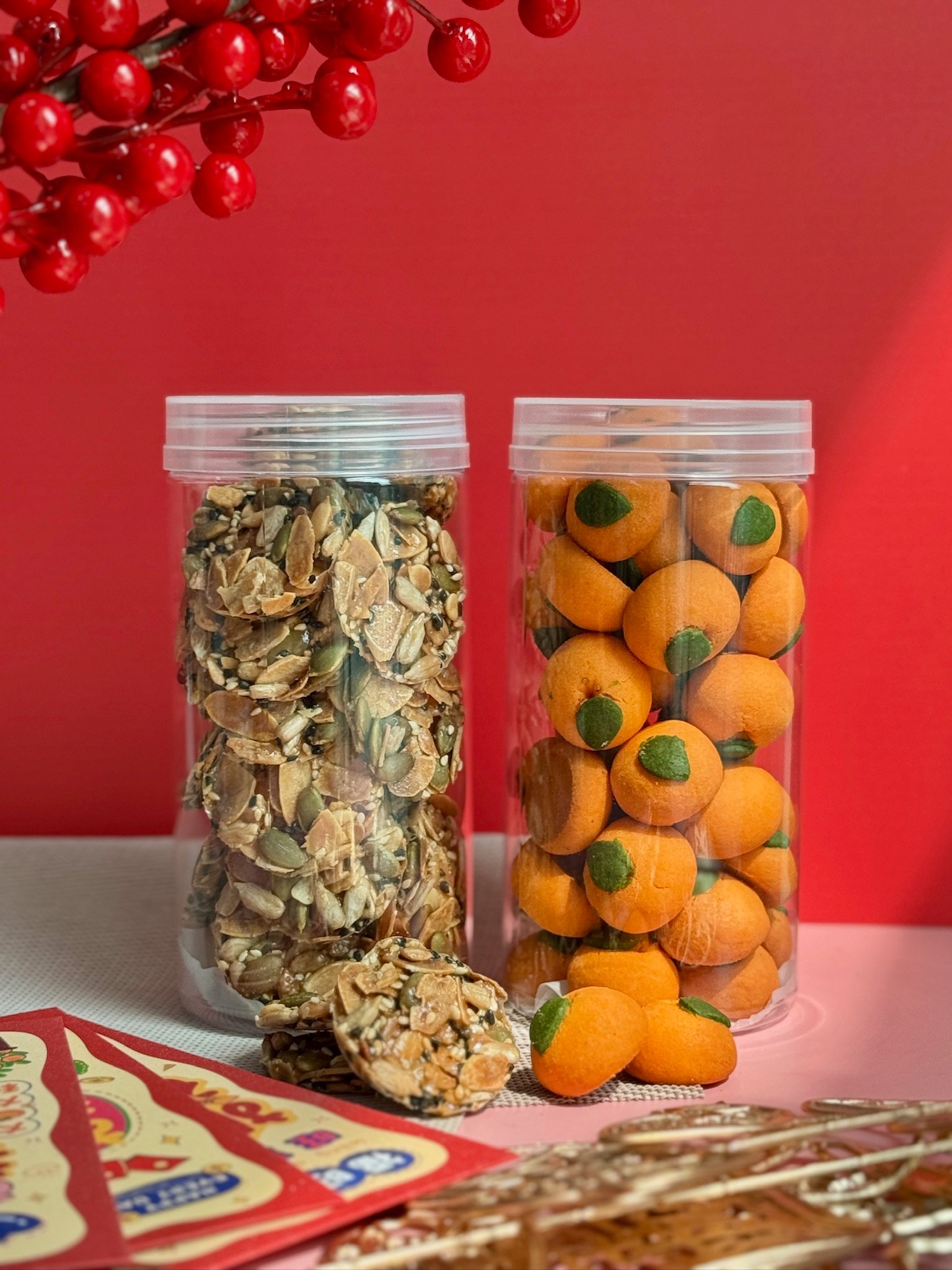 - Mini Mandarin Orange Cookies – Fun and vibrant cookies with a nostalgic Super-Ring cheesy flavor, designed to look like mandarin oranges, representing luck and prosperity.